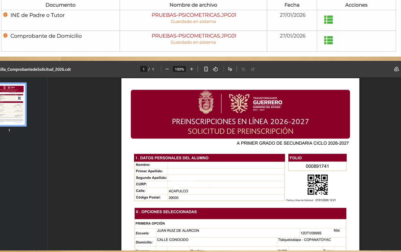 Una vez concluido el proceso, se puede realizar la reimpresión del comprobante ingresando al sitio con la CURP del alumno.