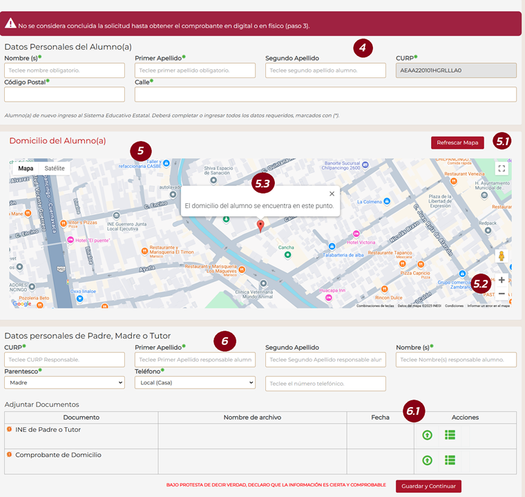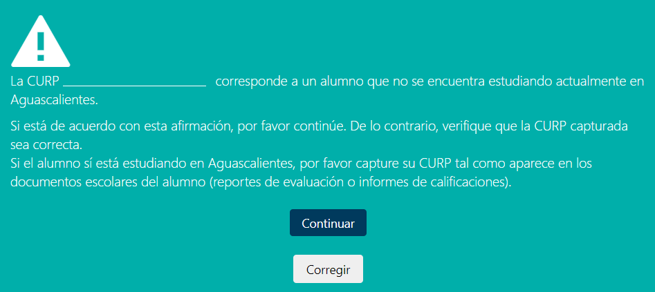 Al ingresar con la CURP de un alumno de nuevo ingreso al Sistema Educativo Estatal o alumnos que participen en el proceso de cambios de asignación, deberán ingresar los siguientes datos.